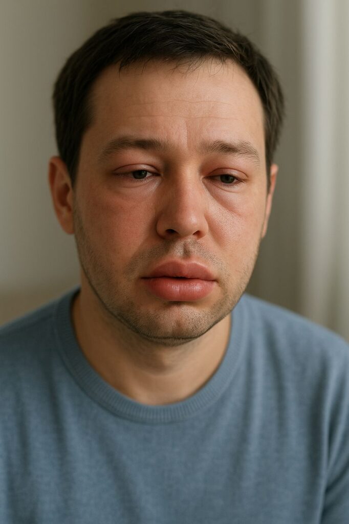 - Rasa tebal/berdenyut pada bibir & kelopak mata