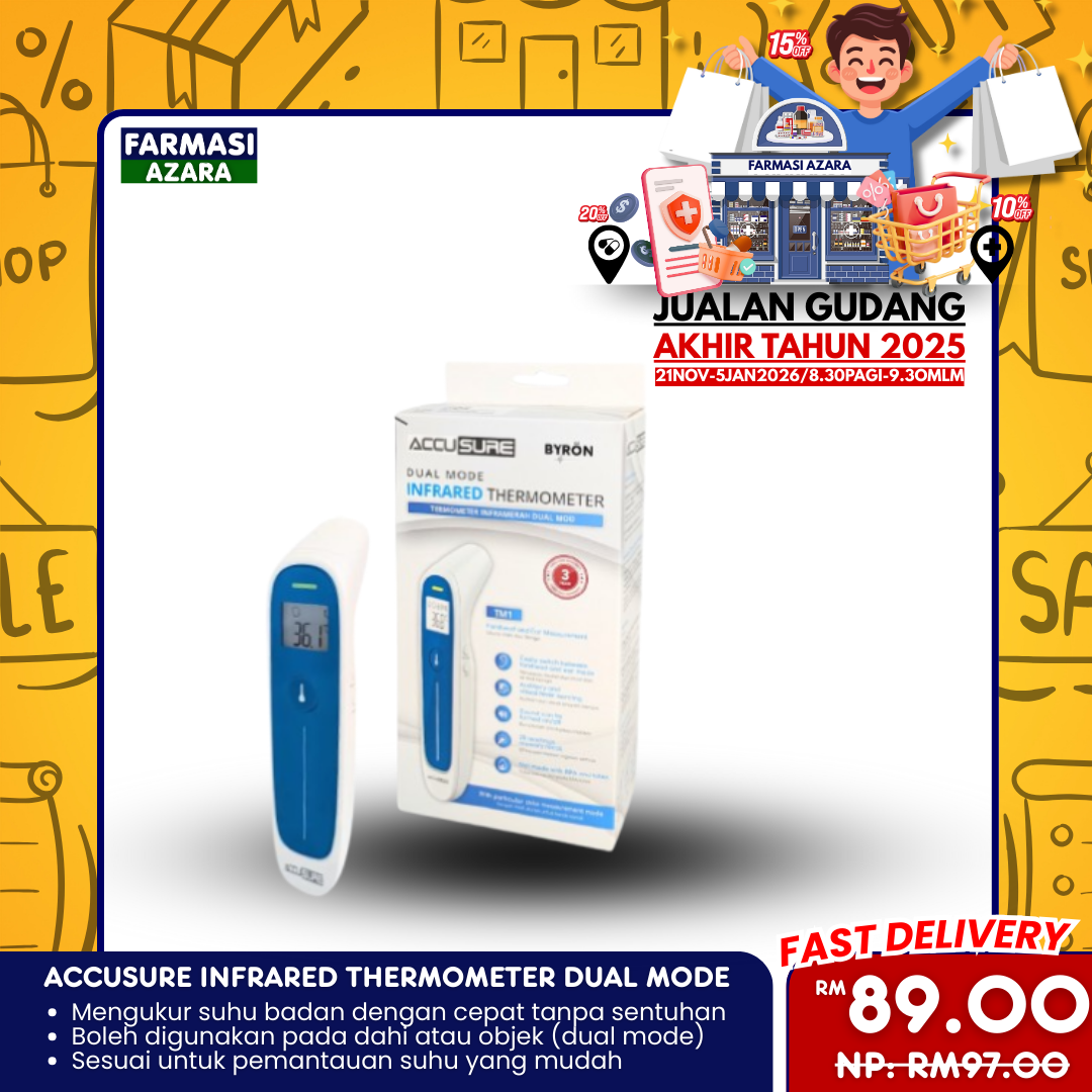 Accusure Dual Mode Infrared Thermometer menawarkan penyelesaian dengan pengukuran suhu tanpa sentuh, menjadikannya mudah dan selesa untuk digunakan oleh semua ahli keluarga.