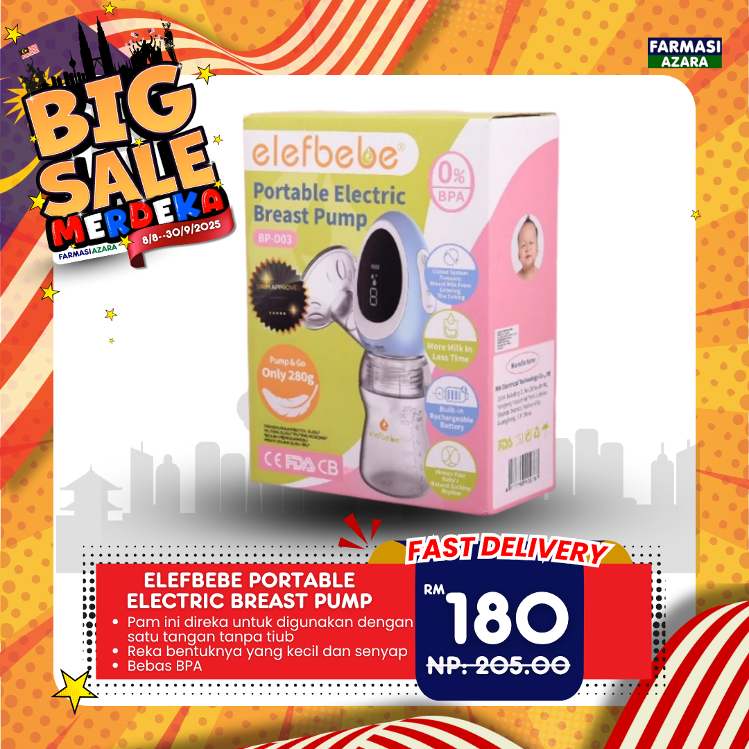 ELEFBEBE Portable Electric Breast Pump direka khas untuk ibu yang aktif, bekerja atau dalam perjalanan. Ia membantu memastikan pengeluaran susu tidak terganggu dan memberikan pengalaman mengepam yang lebih selesa, senyap dan mudah.