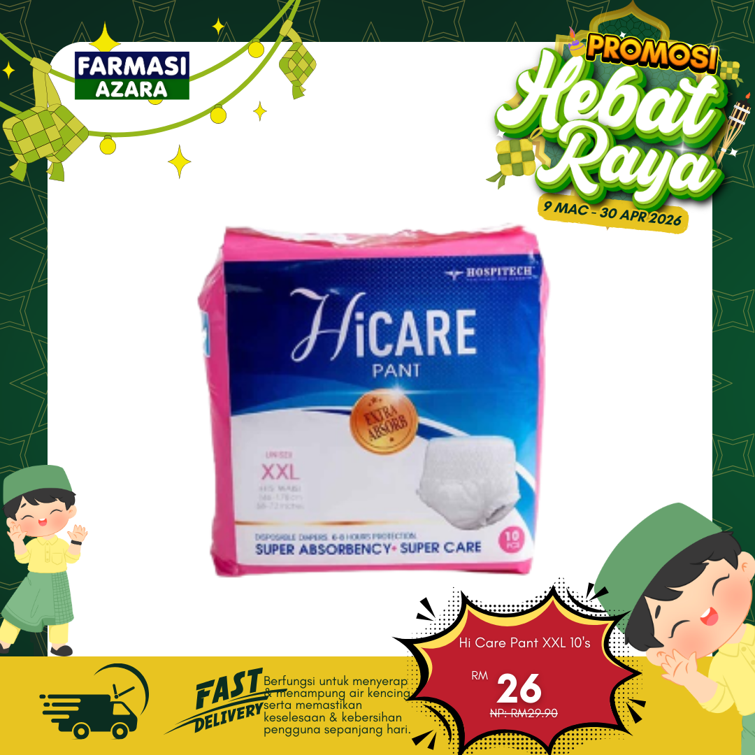 Dapatkan HI-CARE PANTS EXTRA ABSORB – XXL dan bantu pesakit tersayang kekal kering, selesa dan lebih yakin setiap hari.