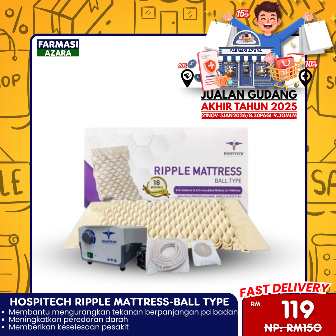 Hospitech Ripple Mattress dicipta khusus untuk mengatasi masalah ini. Dengan teknologi gelombang tekanan yang inovatif, tilam ini mengagihkan beban badan secara sekata, mengurangkan tekanan pada bahagian tubuh yang paling terdedah. Ini bukan sahaja membantu mengurangkan risiko luka tekanan tetapi juga meningkatkan keselesaan pesakit yang terpaksa berbaring lama.