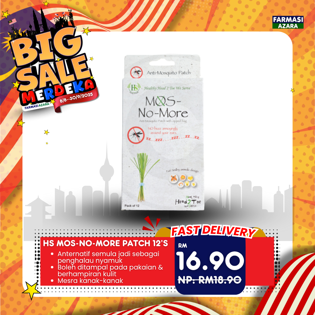 Dapatkan HS Mos-No-More Patch 12’s sekarang dan nikmati hari tanpa gatal-gatal gigitan nyamuk!