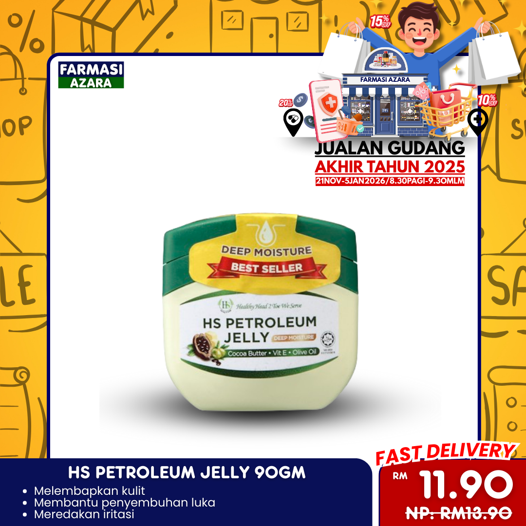 Dapatkan HS Petroleum Jelly hari ini dan berikan kulit anda perlindungan dan kelembapan yang terbaik! Jangan tunggu lagi, lindungi kulit anda dari kekeringan dan iritasi dengan HS Petroleum Jelly. Rasai kesan pemulihan yang menakjubkan sekarang!