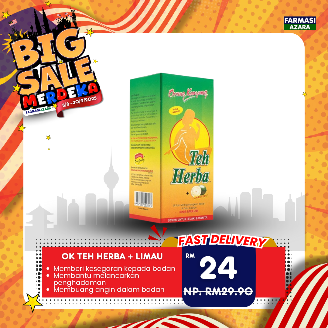 OK Teh Herba + Limau dirumus khas menggunakan ramuan herba tempatan yang telah diamalkan sejak turun-temurun – digabungkan pula dengan perahan limau asli yang beri rasa segar, bantu panaskan badan & hilangkan rasa mual.