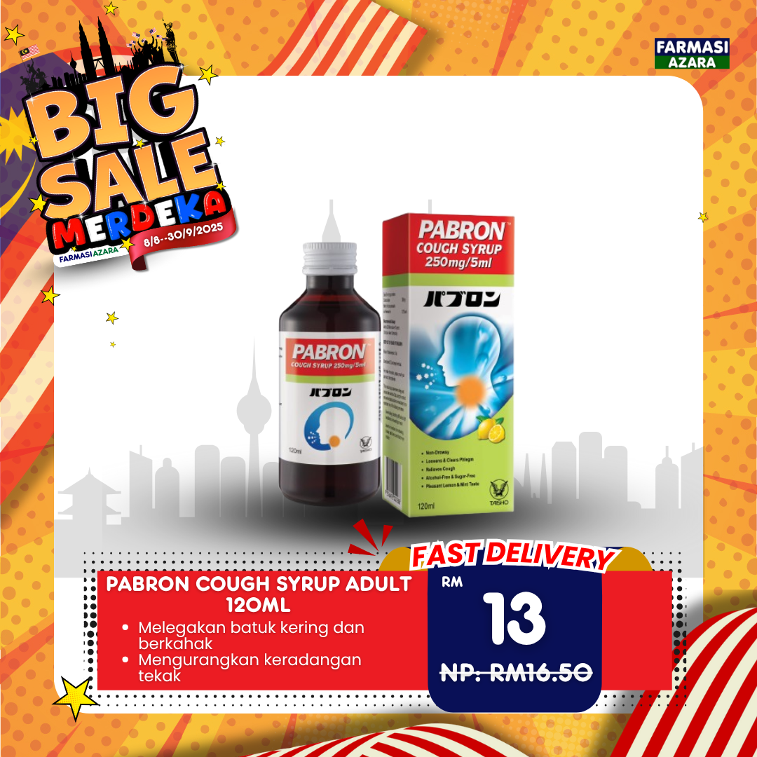 Pabron Cough Syrup 250 mg/5 ml (120 ml) — larutan mudah untuk batuk berdahak yang cepat, selamat, dan nyaman.