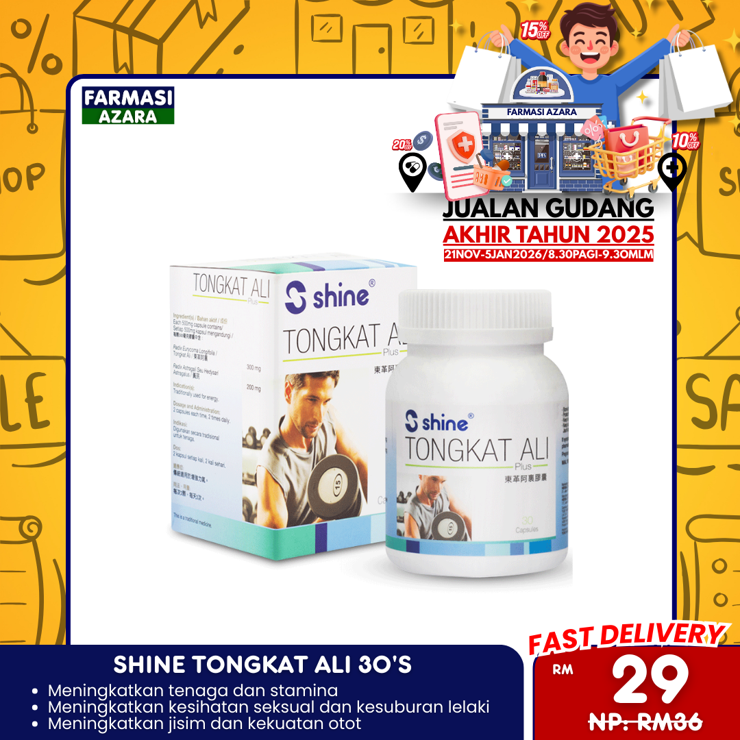 Shine Tongkat Ali Plus 30’s adalah suplemen yang menggabungkan ekstrak Tongkat Ali dan Astragalus, yang secara tradisional digunakan untuk meningkatkan tenaga, memperkuat sistem imun, dan menyeimbangkan hormon.