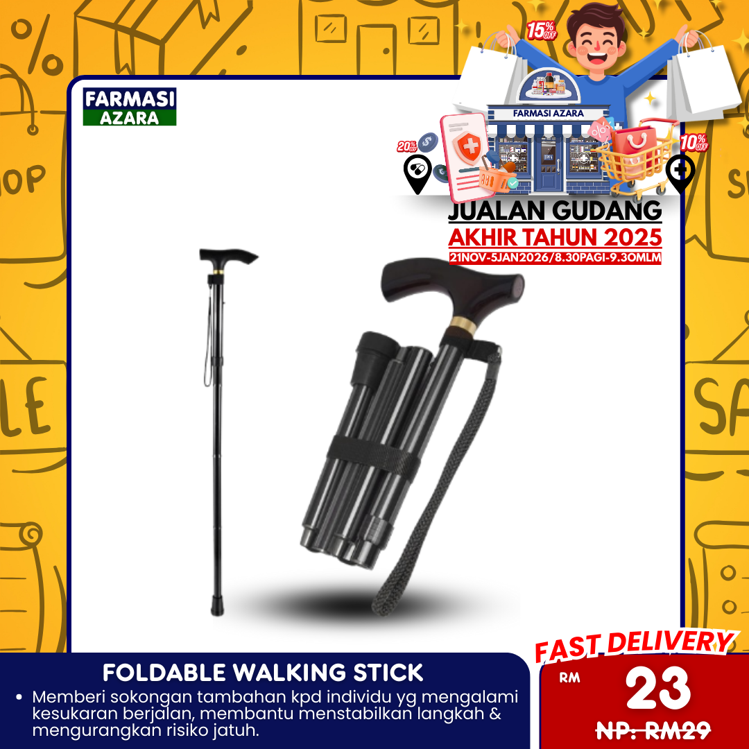 Tongkat Lipat direka khas untuk memberikan sokongan berjalan yang selamat dan selesa, sambil menawarkan kemudahan maksimum kepada pengguna. Dengan reka bentuk boleh lipat, tongkat ini mudah disimpan di dalam beg, laci kereta, atau dibawa semasa perjalanan tanpa memakan ruang yang besar.